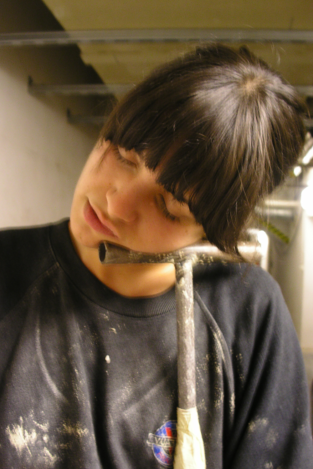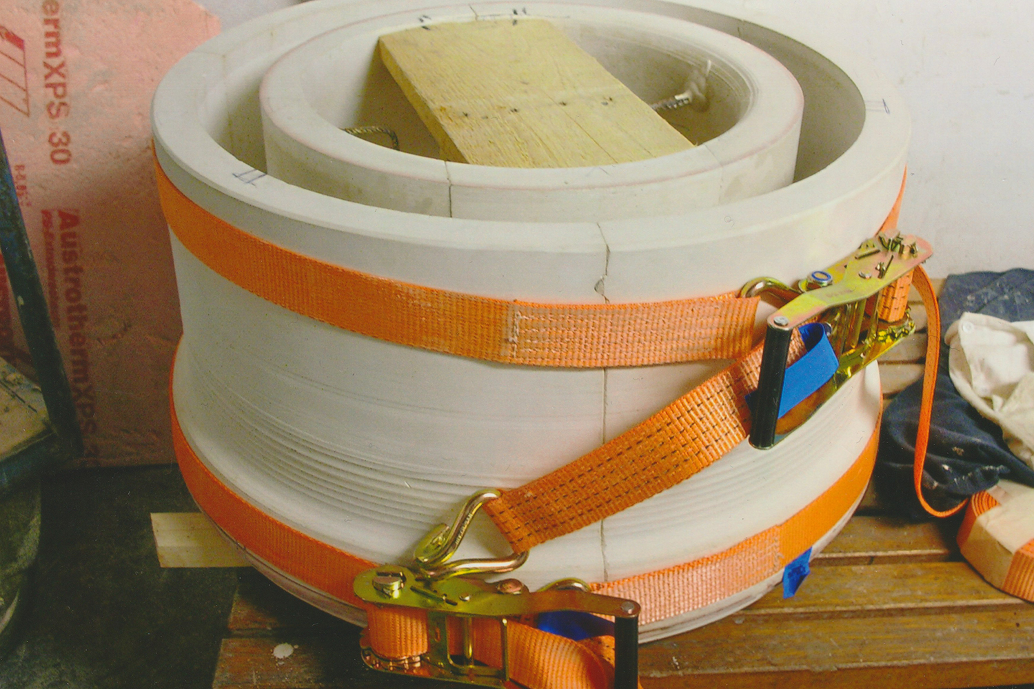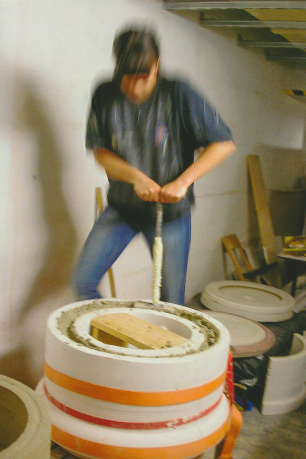 Mit der Form möchte ich die Anwendung von endlichen und als politisches Machtmittel eingesetzten Energieträgern symbolisieren. Meine Absicht ist es nicht, Formelemente des Straßenlebens als Stilmittel in bürgerliche Verhältnisse zu transportieren. Hier wird eine Öltonne mit dem alternativen Brennstoff Holz befüllt und betrieben. Reizvoll war auch die Wahl einer runden Form, da die Tonne durch ihre Gestalt, Größe und reliefartige Oberfläche meinen Anforderungen entsprach. Auch ist die runde Form überall in einem Raum einsetzbar.