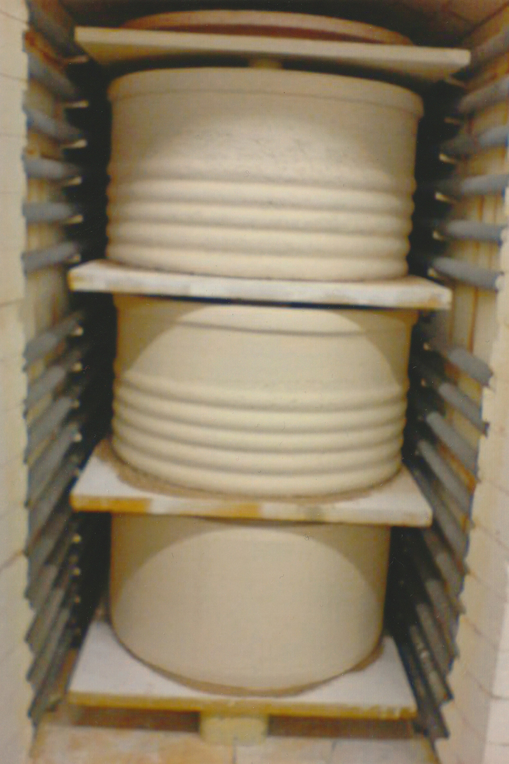 Bei diesem Modell sind es drei Module übereinander, die mit einer speziellen Deckelplatte zum Warmstellen von Speisen und Getränken – oder zur Luftbefeuchtung mittels aufgestellter Wasserschüssel – abschließt. Durch die Verwendung mehrerer Module kann die Höhe des Ofens sowie auch die Heizleistung individuell angepasst werden.
